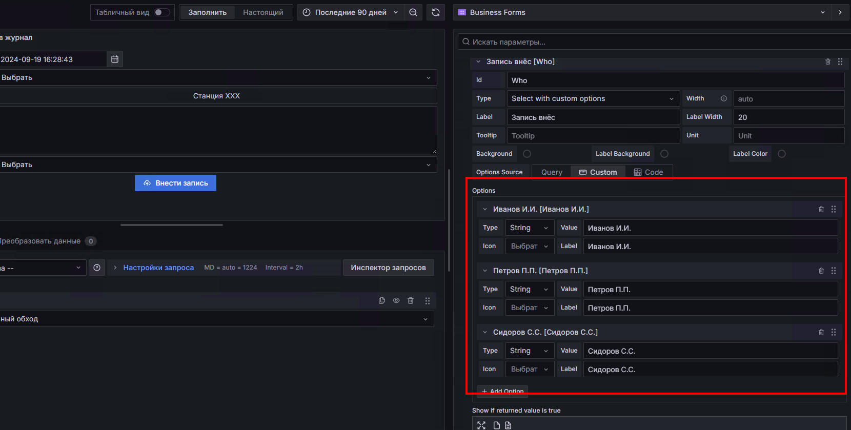 Сама форма журнала: количество колонок, списки возможных значений, формат формы ввода, значения по умолчанию - гибко настраиваются и должны быть согласованы на этапе первоначальной настройки, а также могут быть откорректированы в процессе последующей эксплуатации.