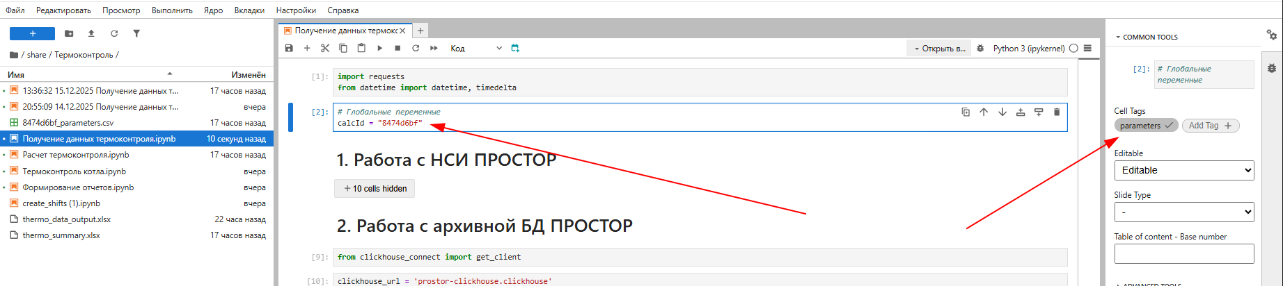 Для возможности создания аналитических расчетов, отладки итерационных или оптимизационных расчетов, использующих данные НСИ и исторических архивов, накопленные в платформе, используются интегрированные в платформу JupyterNotebook'и.