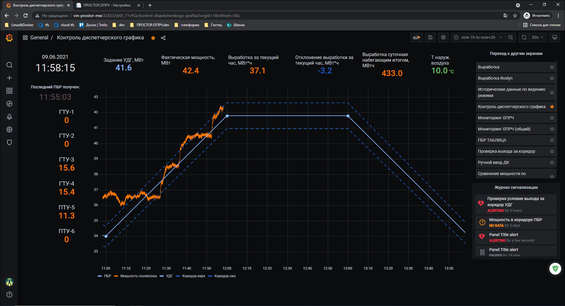 Рисунок 3. Пример контроля исполнения диспетчерского графика на