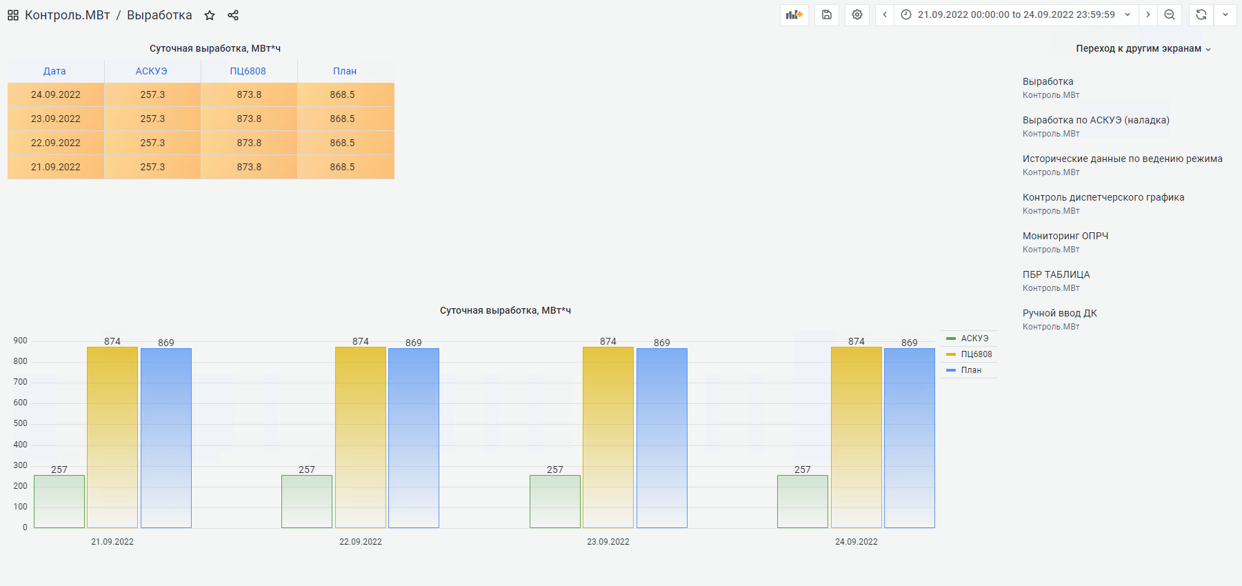 Рисунок 4. Пример просмотра статистики выработки и сопоставление с